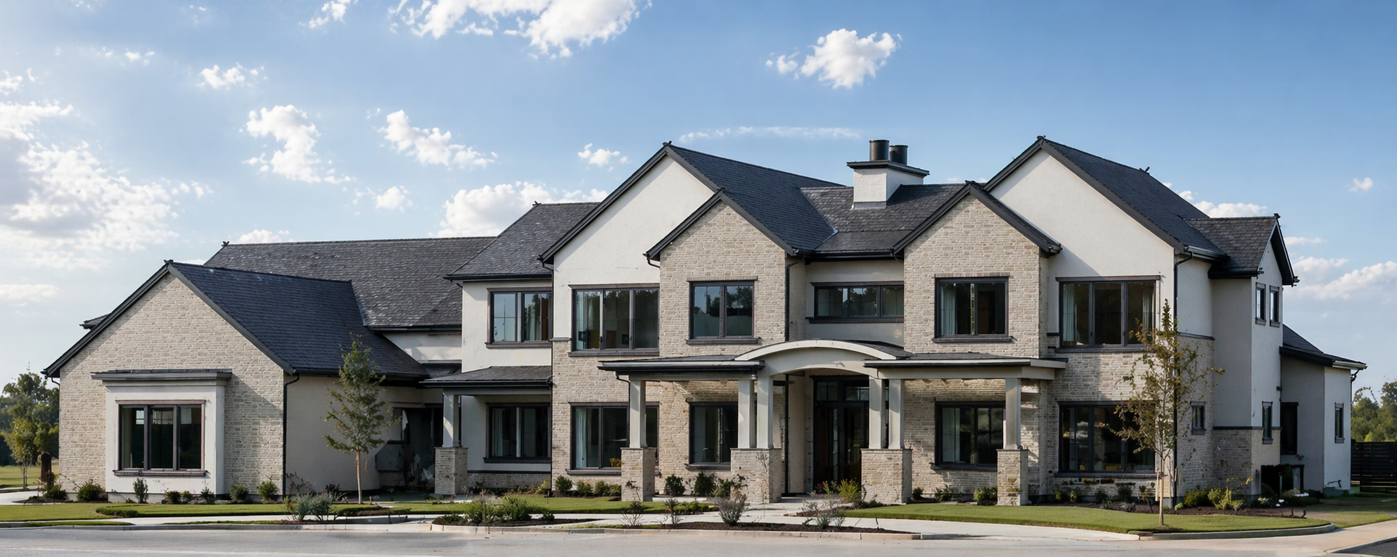 A refined mix of natural materials and clean architectural forms adds depth and texture, while maintaining a quiet, modern presence that fits the setting.