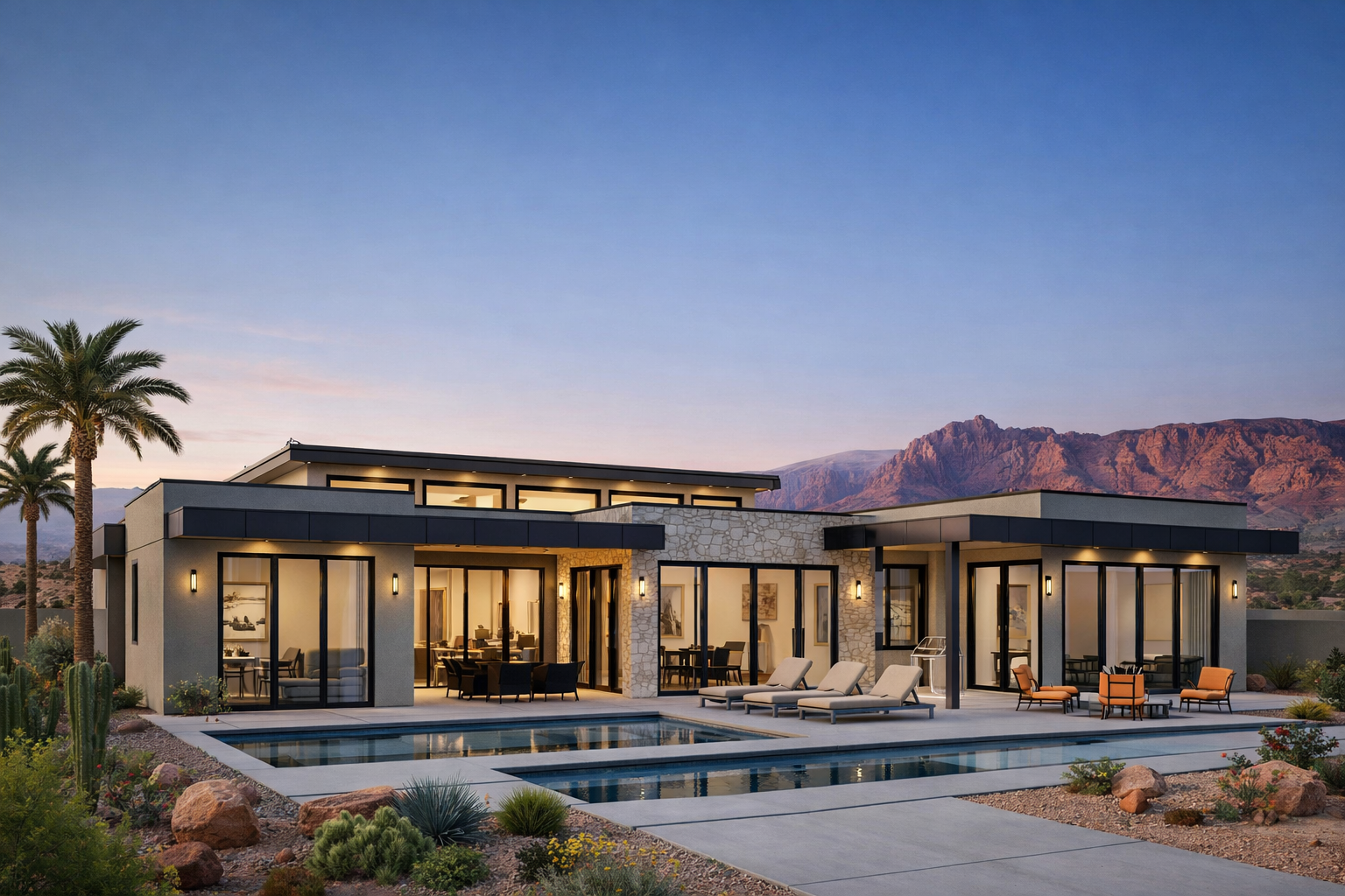 Set within the red rock landscape of Sand Hollow, this custom residence is designed to feel both grounded and expansive, shaped by its surroundings and the way the home is lived in.