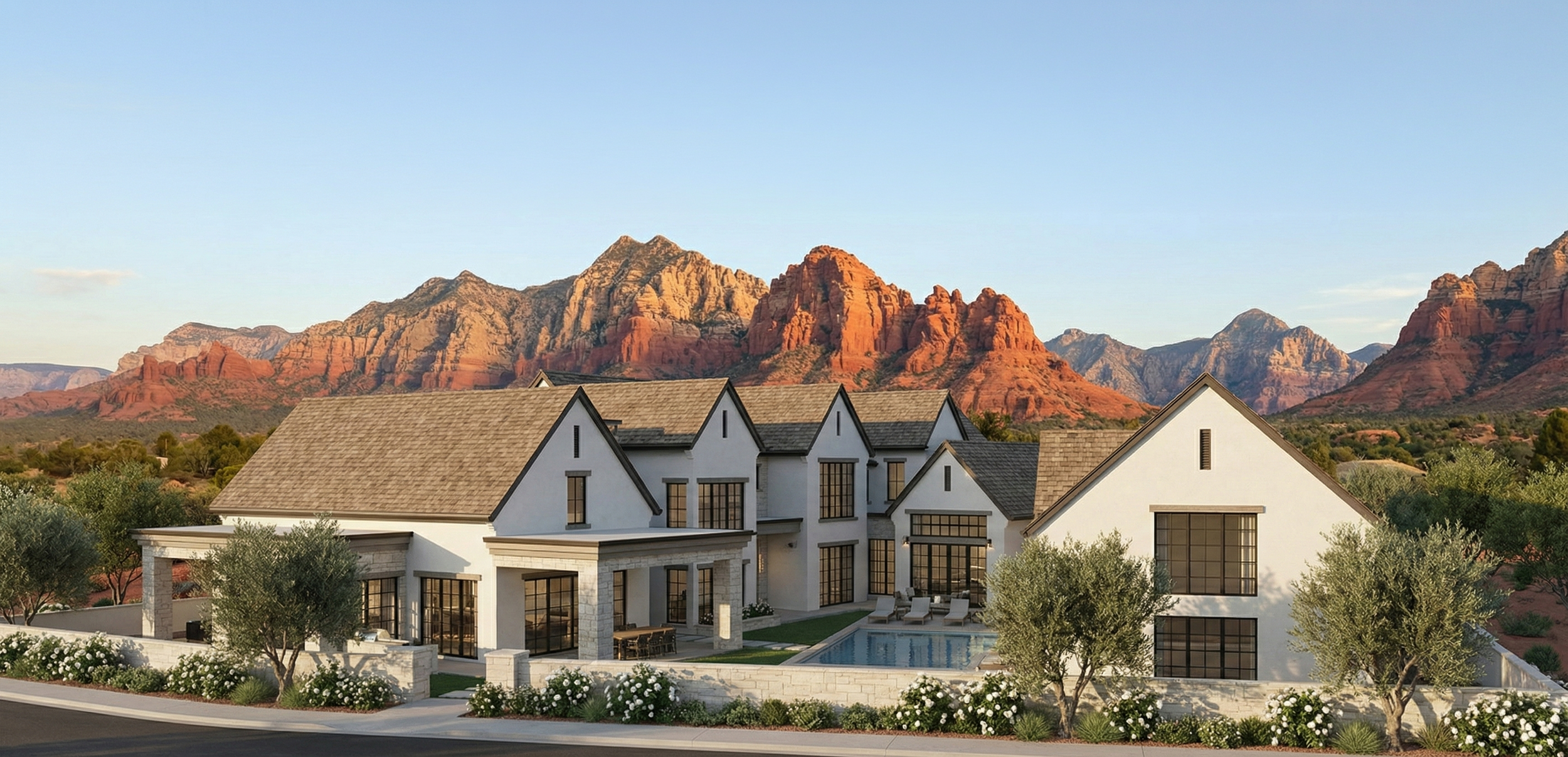 The architecture establishes a strong, grounded presence through a refined palette of stucco, stone, and slate, while carefully composed openings bring natural light deep into the home. The design balances scale with livability, creating spaces that feel expansive without losing a sense of comfort and connection.