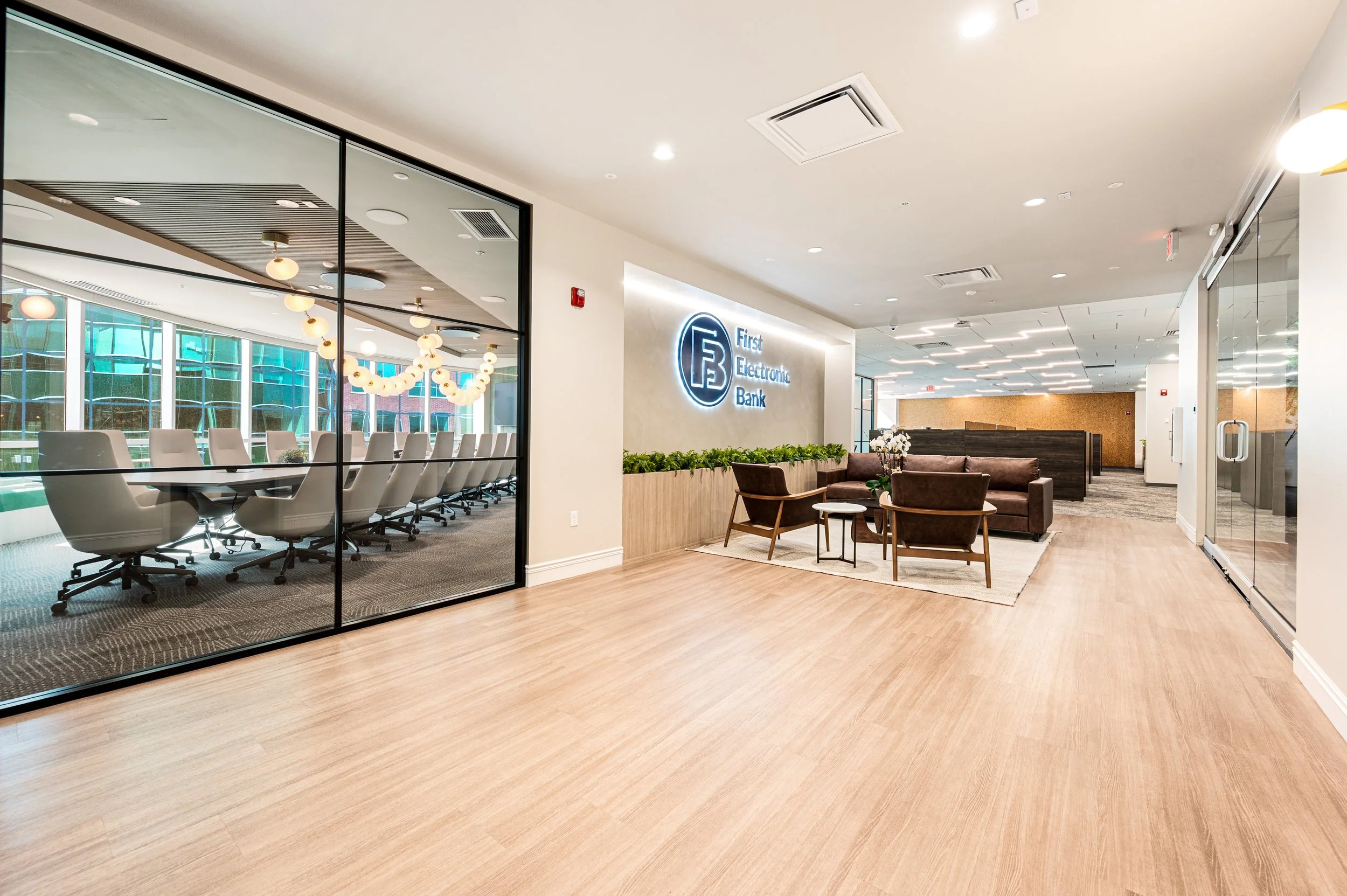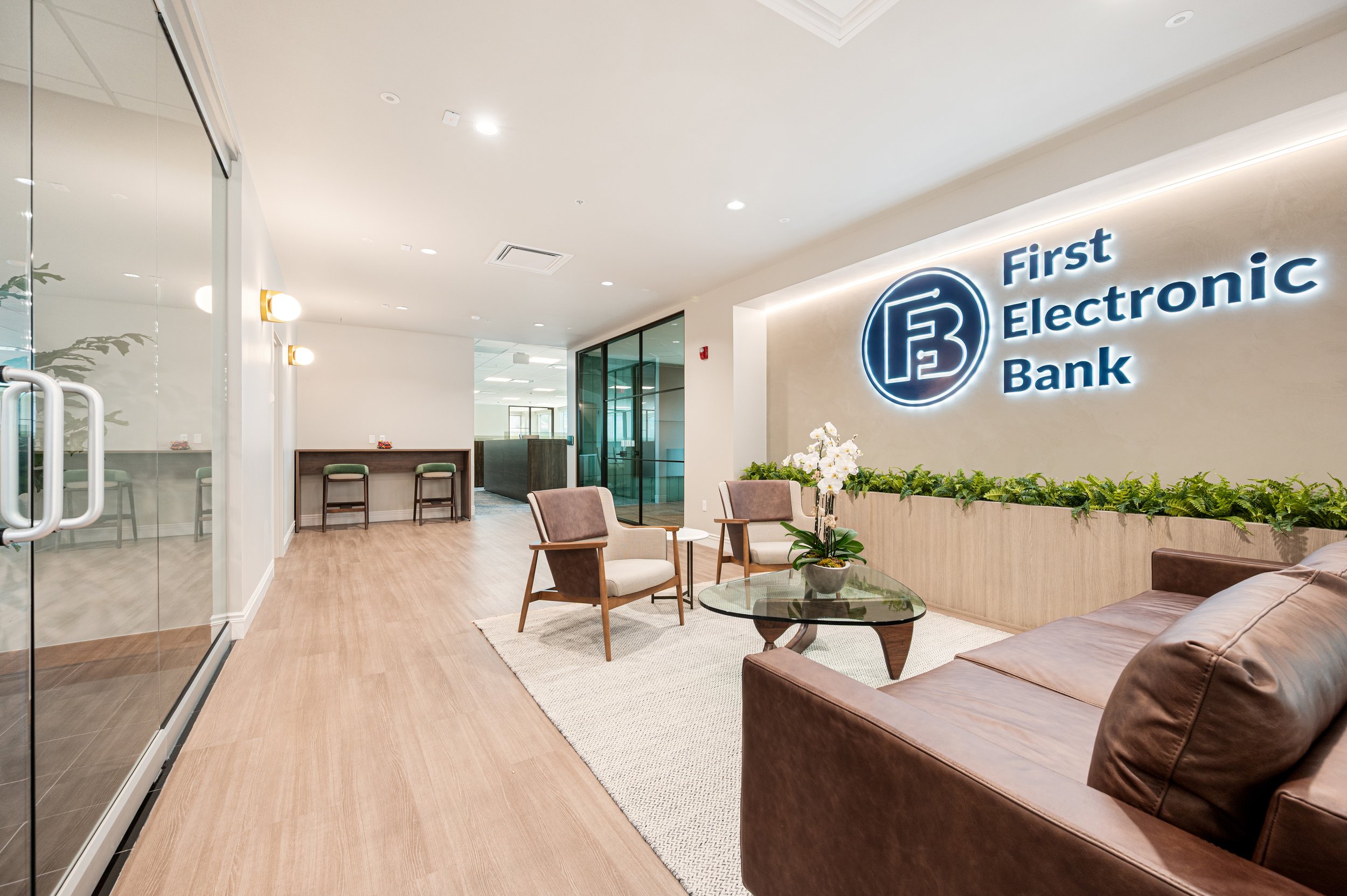 Onyx Design Collective partnered with First Electronic Bank to create a refined, modern workspace that reflects the institution’s commitment to innovation, trust, and long-term growth. The design balances professional functionality with an elevated aesthetic, resulting in a workplace that feels both sophisticated and welcoming for employees and visitors alike.