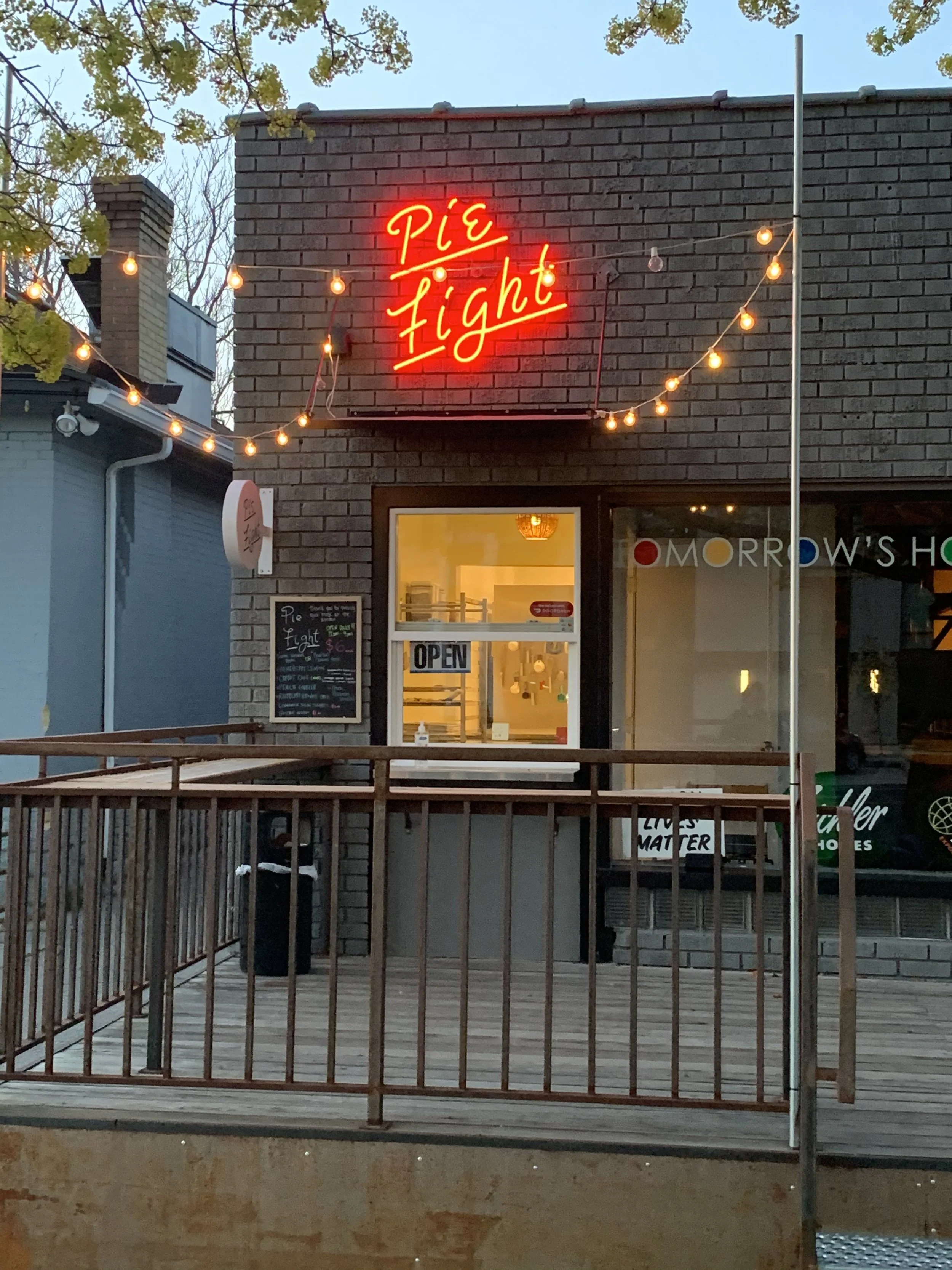 Every detail, down to the brushed chrome door hardware and ADA-compliant finishes, was considered to meet code requirements while maintaining the approachable, neighborhood character that defines Pie Fight. The result is a small but mighty space that supports local craftsmanship and community connection.