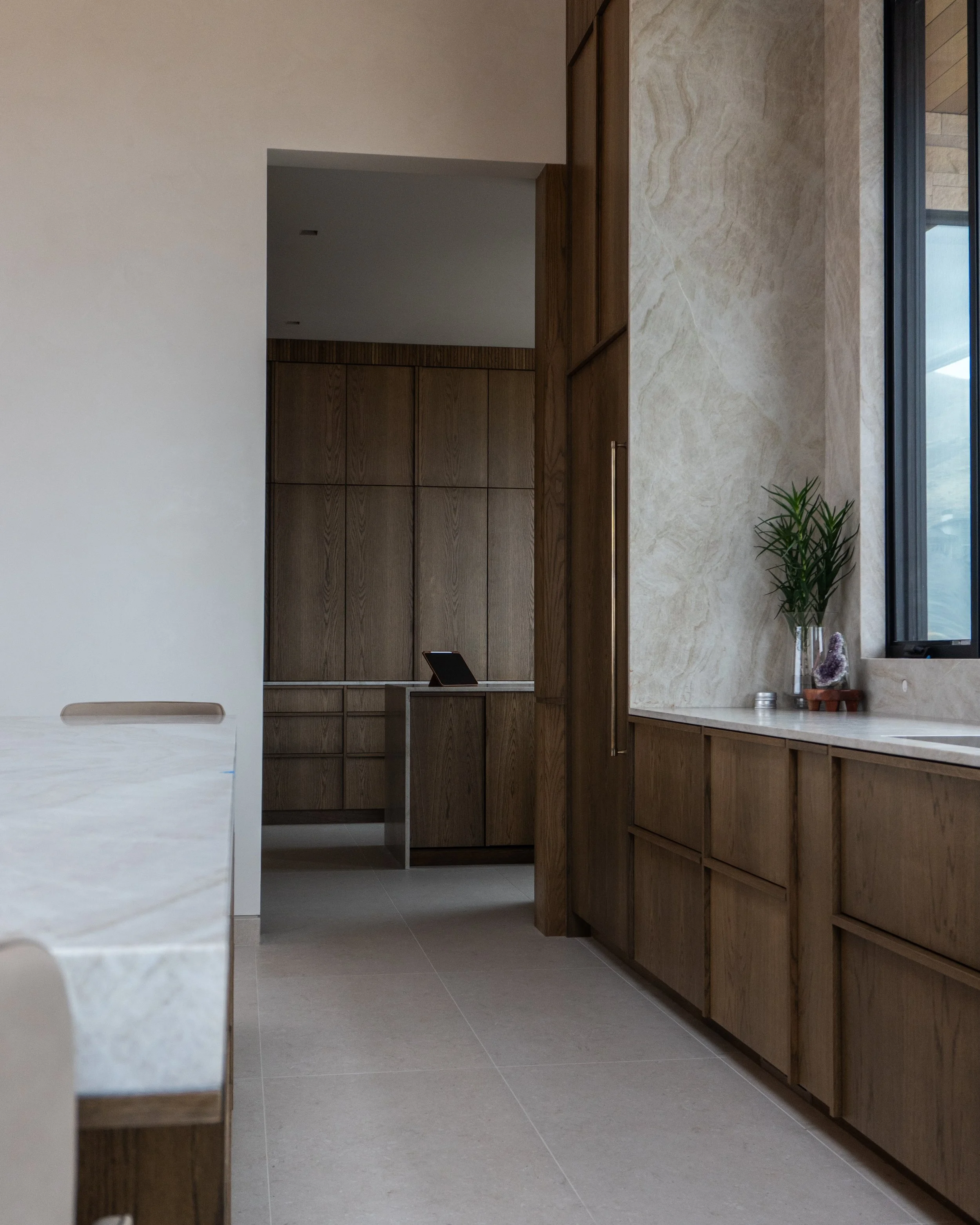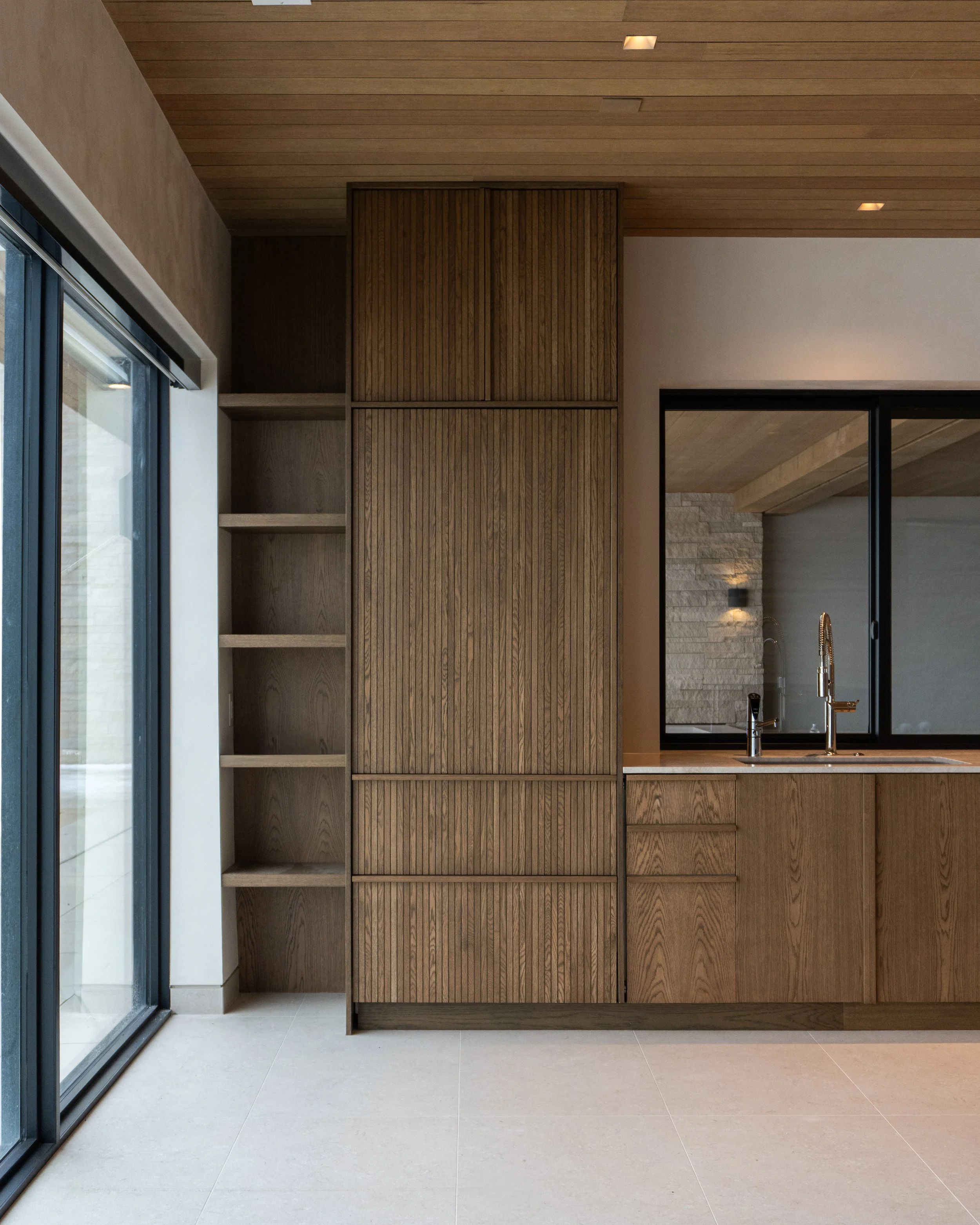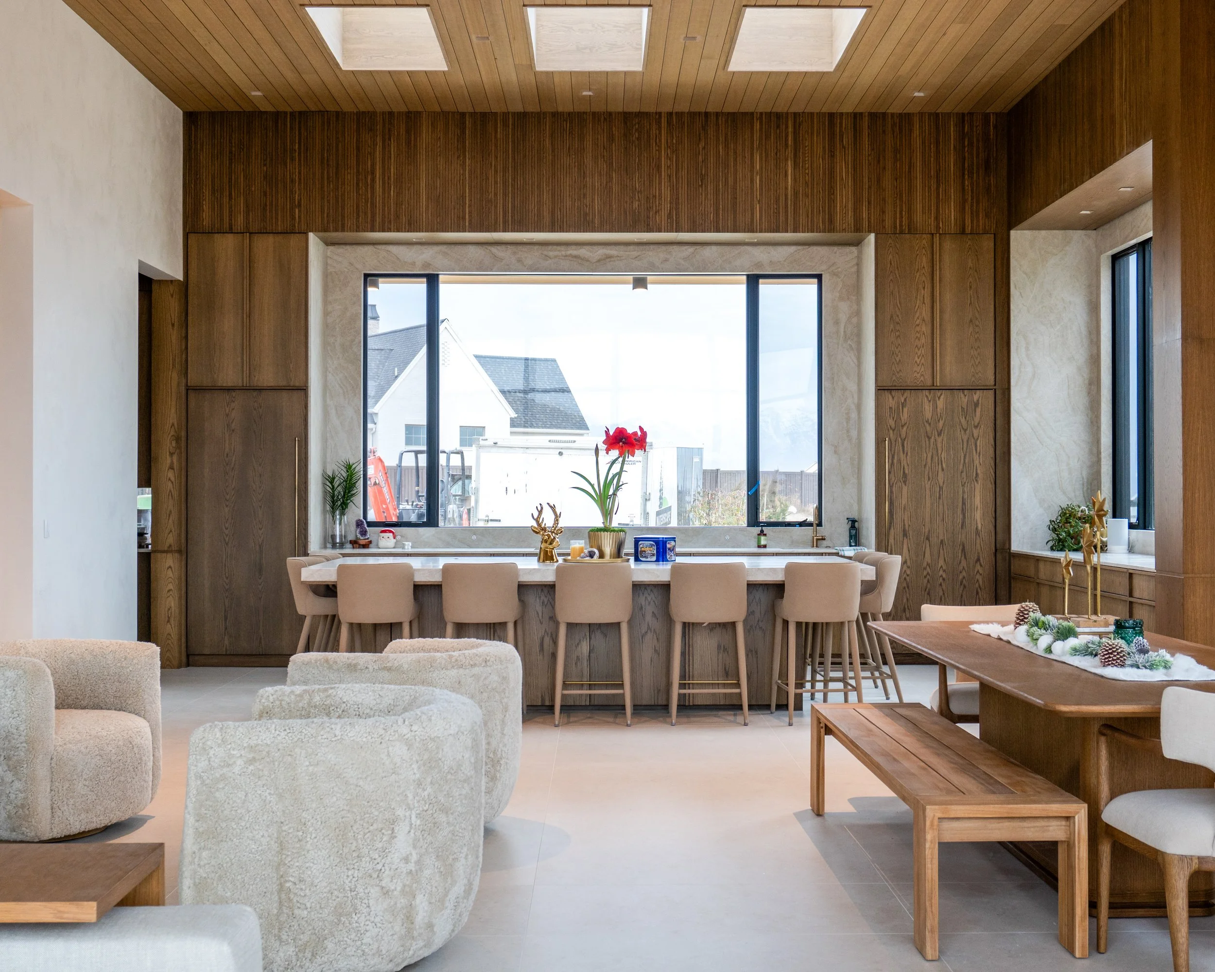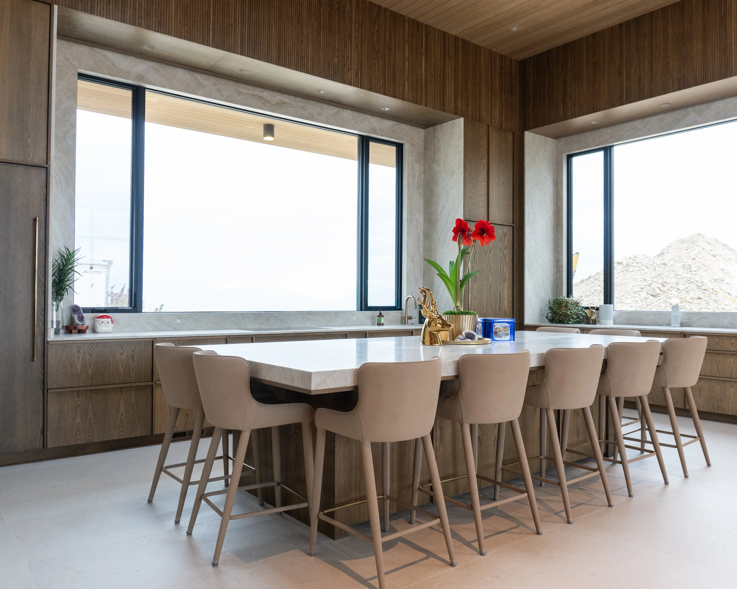 Clean lines and restrained massing establish a contemporary presence, while carefully selected materials introduce depth and warmth throughout the home. Expansive glazing, open living areas, and intentional sightlines create a seamless relationship between indoor and outdoor spaces, supporting both everyday living and effortless entertaining.