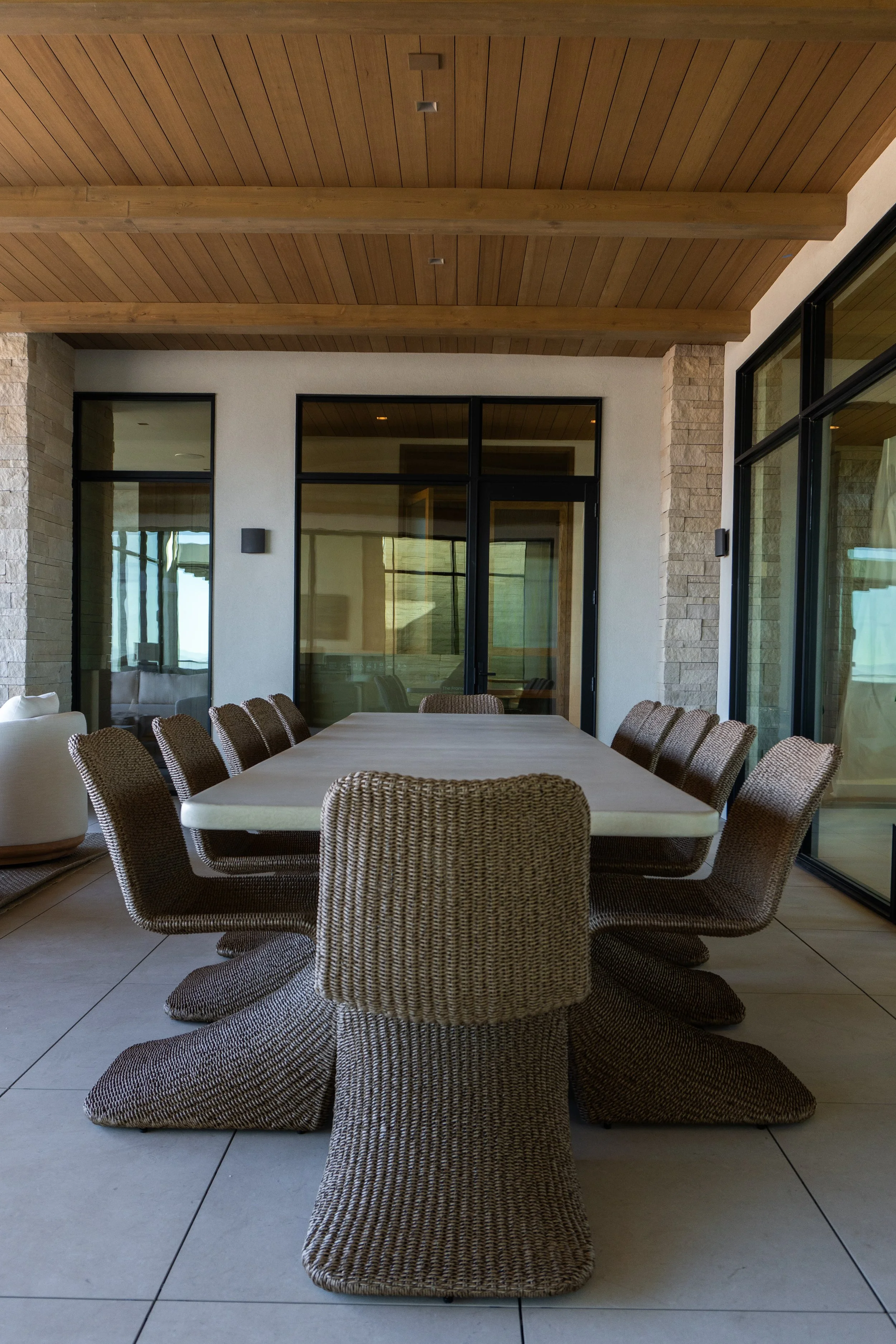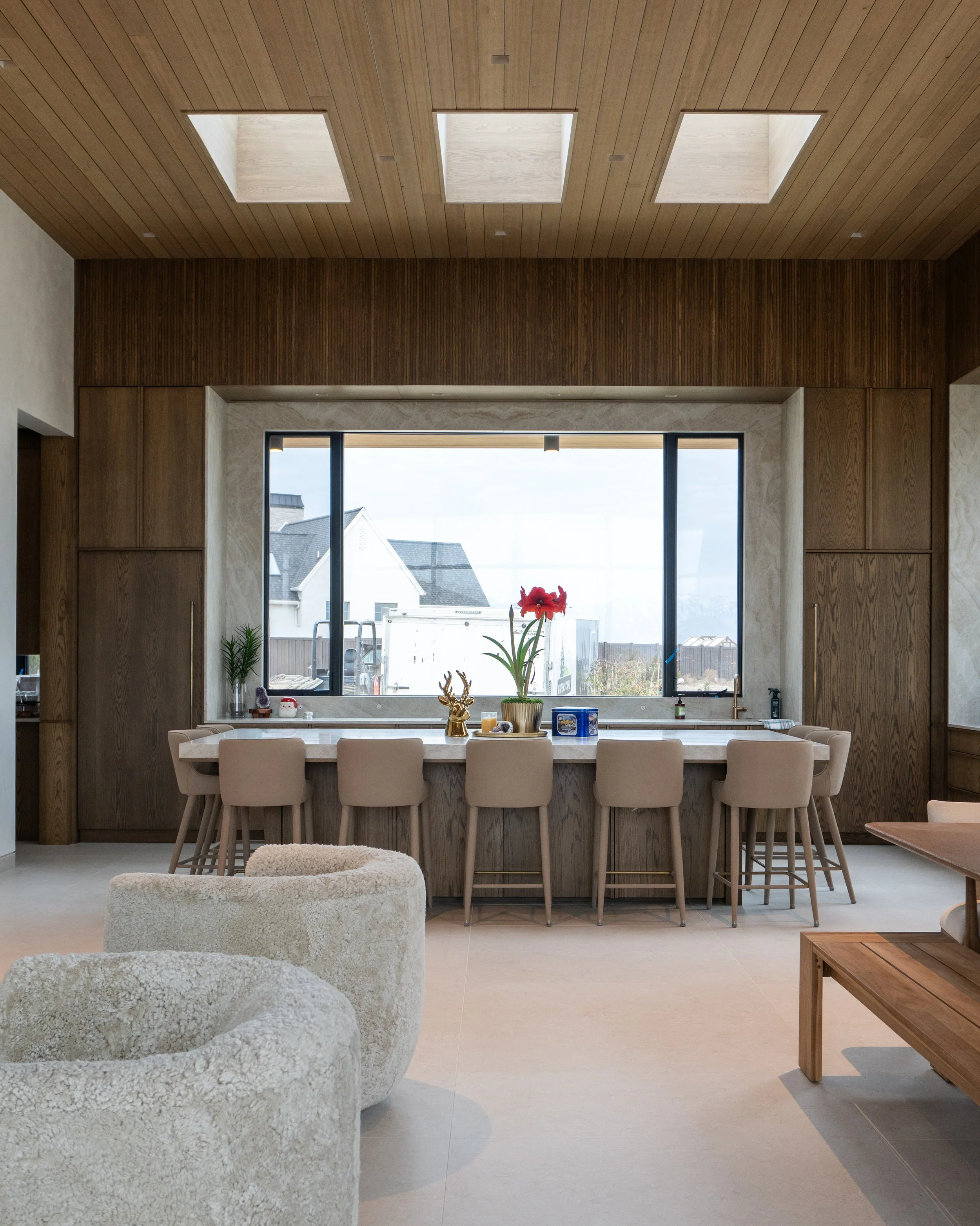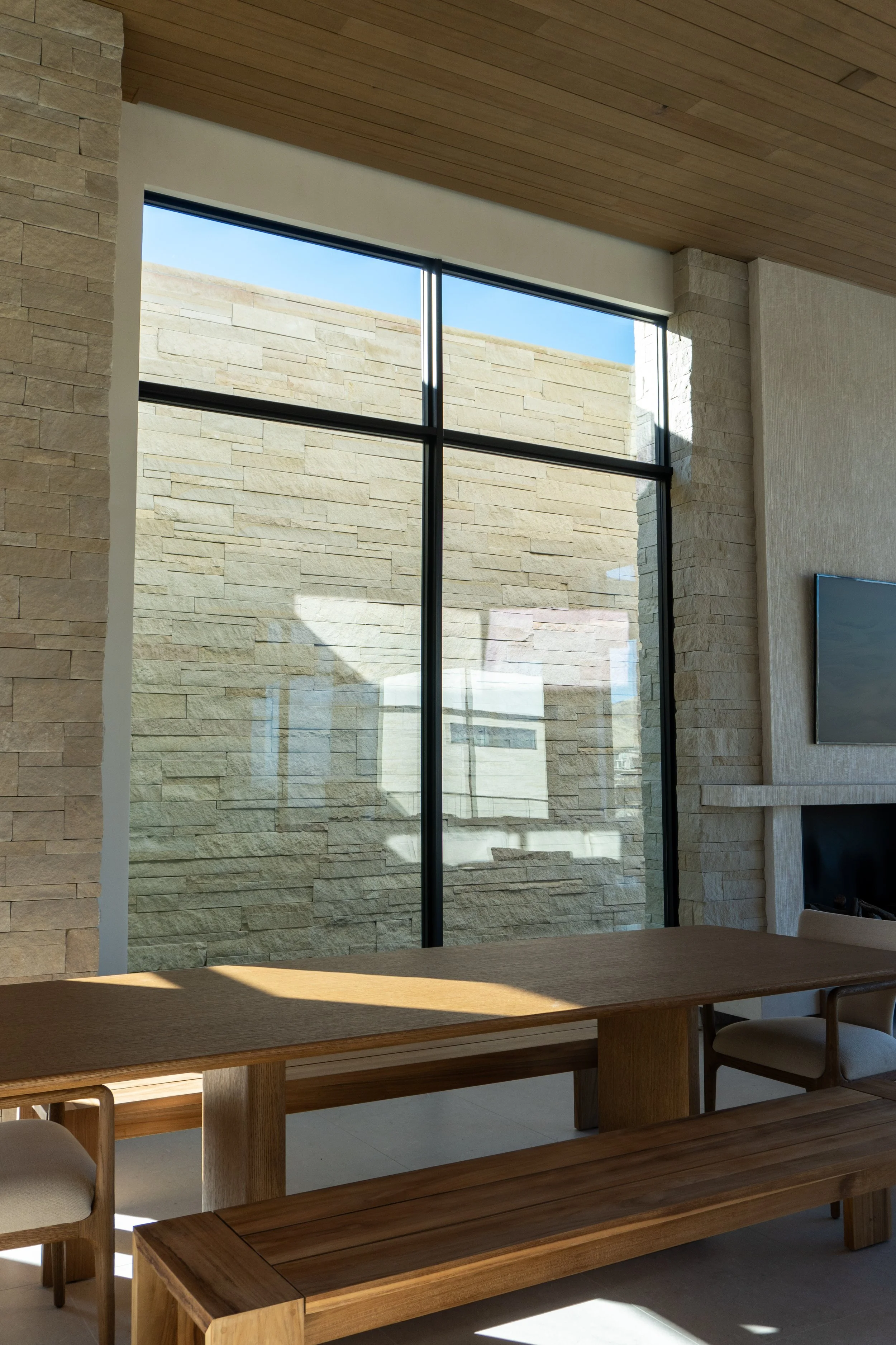 Clean lines and restrained massing establish a contemporary presence, while carefully selected materials introduce depth and warmth throughout the home. Expansive glazing, open living areas, and intentional sightlines create a seamless relationship between indoor and outdoor spaces, supporting both everyday living and effortless entertaining.
