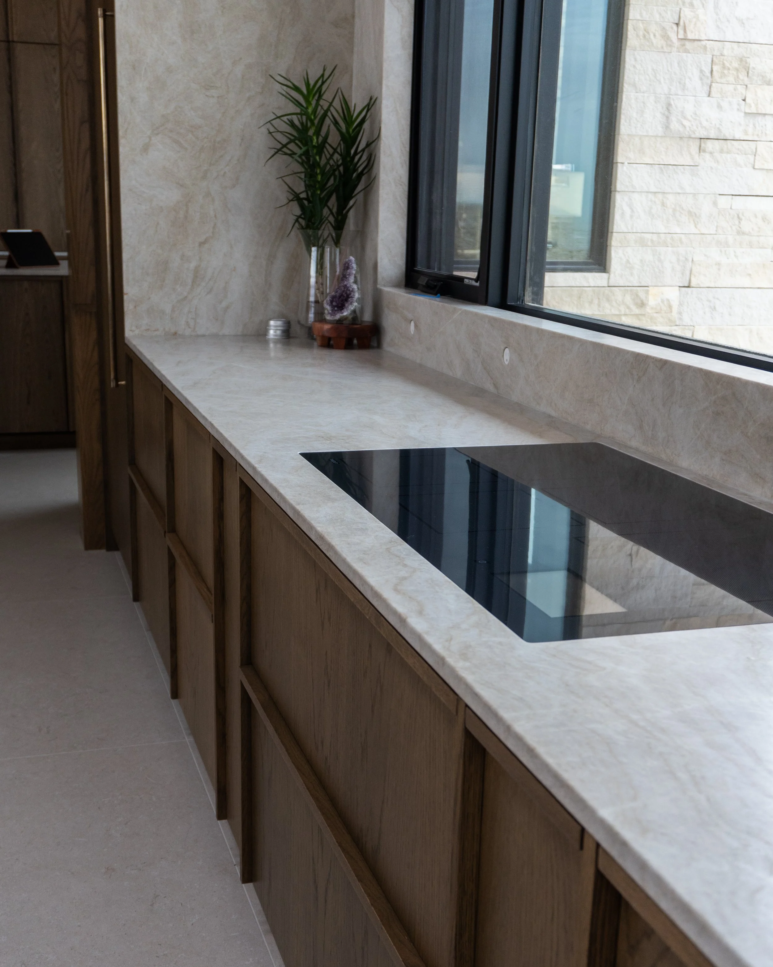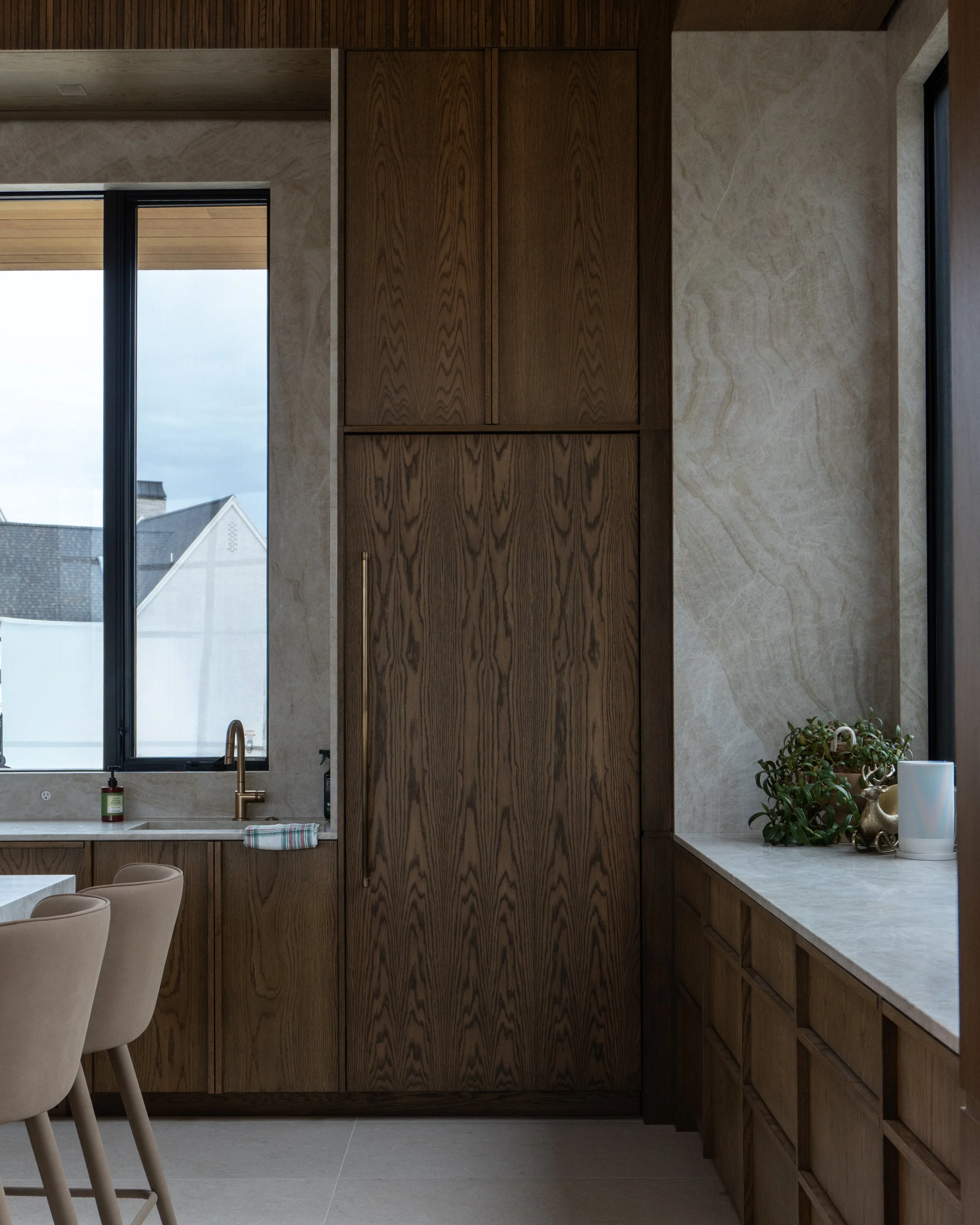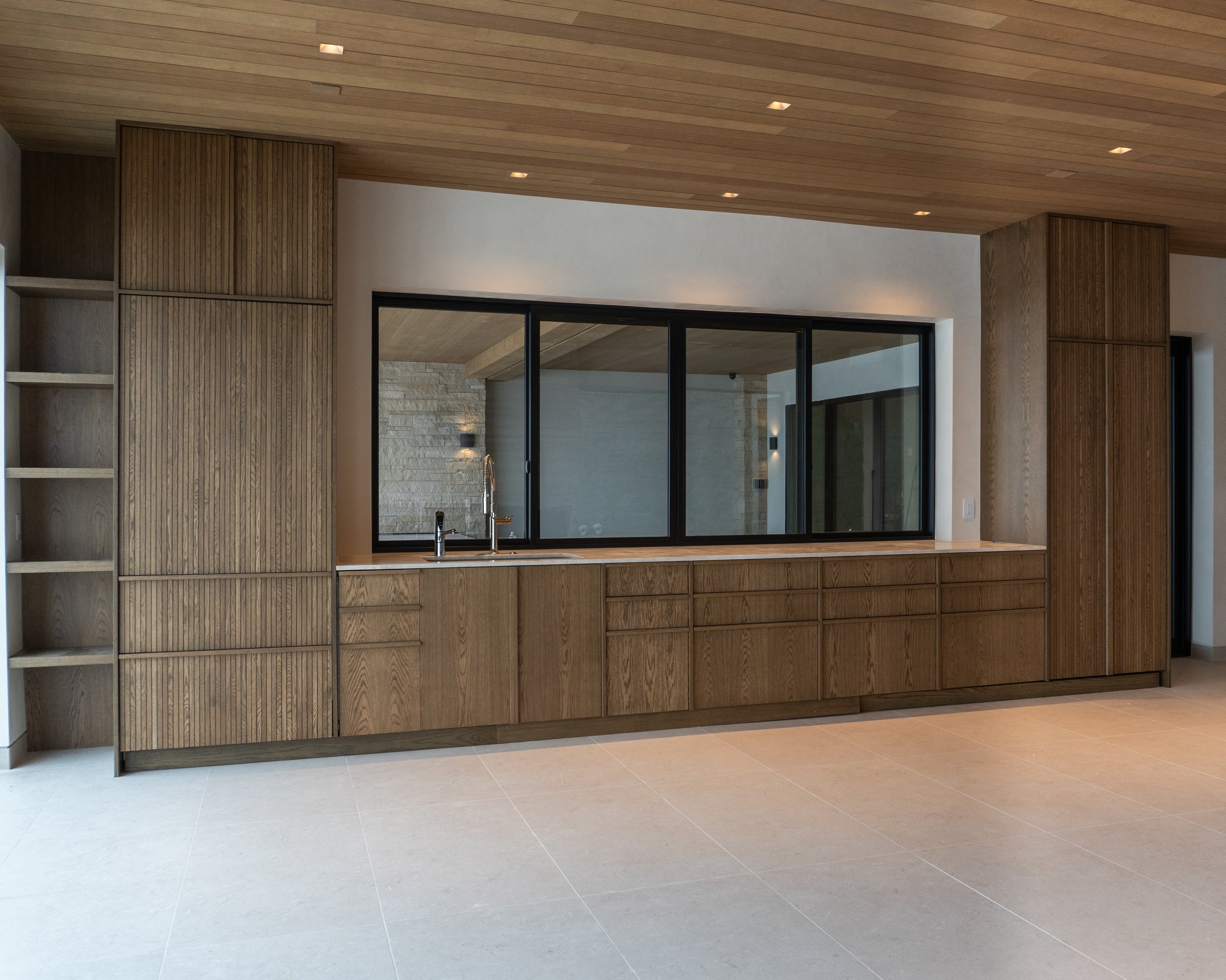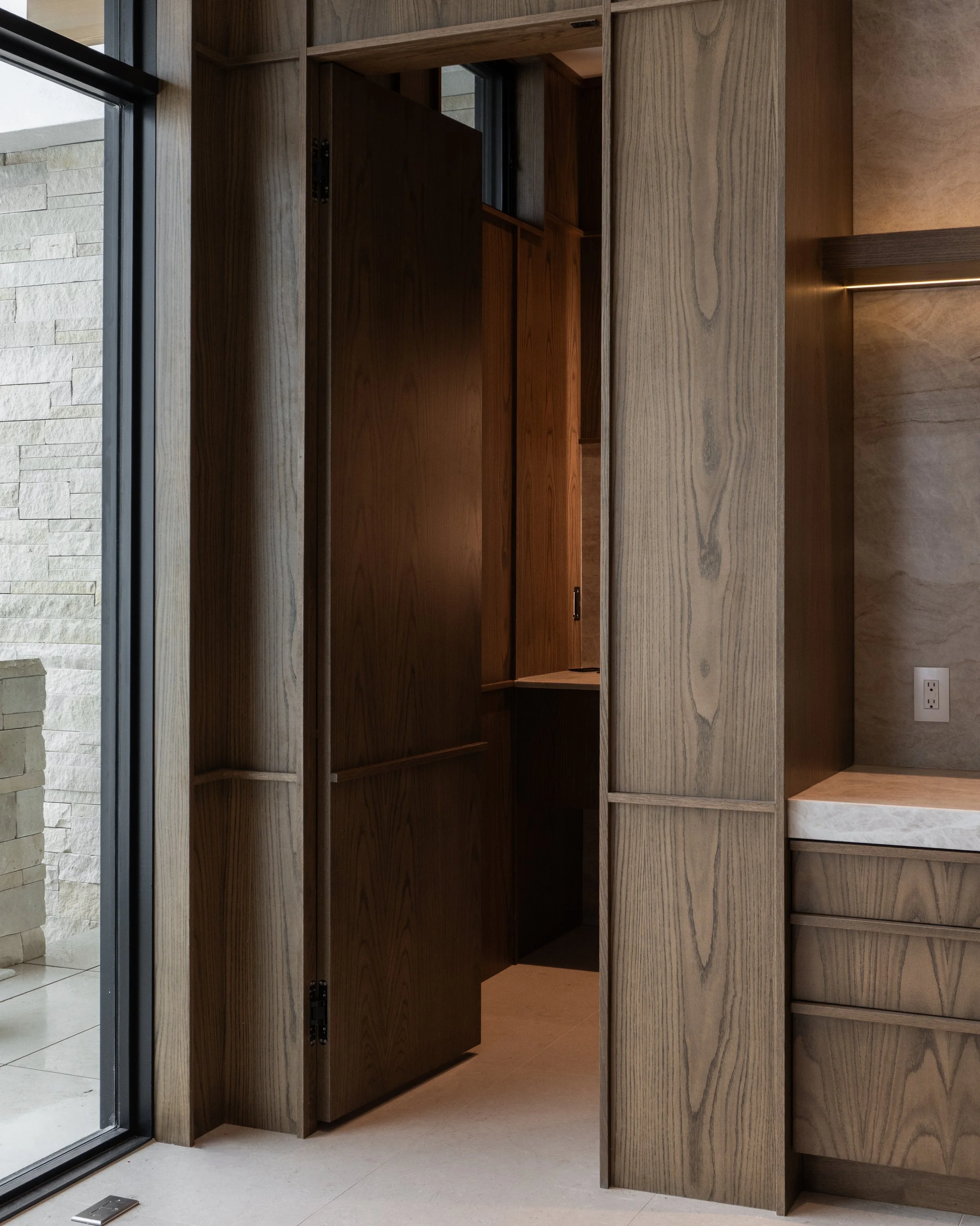 Clean lines and restrained massing establish a contemporary presence, while carefully selected materials introduce depth and warmth throughout the home. Expansive glazing, open living areas, and intentional sightlines create a seamless relationship between indoor and outdoor spaces, supporting both everyday living and effortless entertaining.